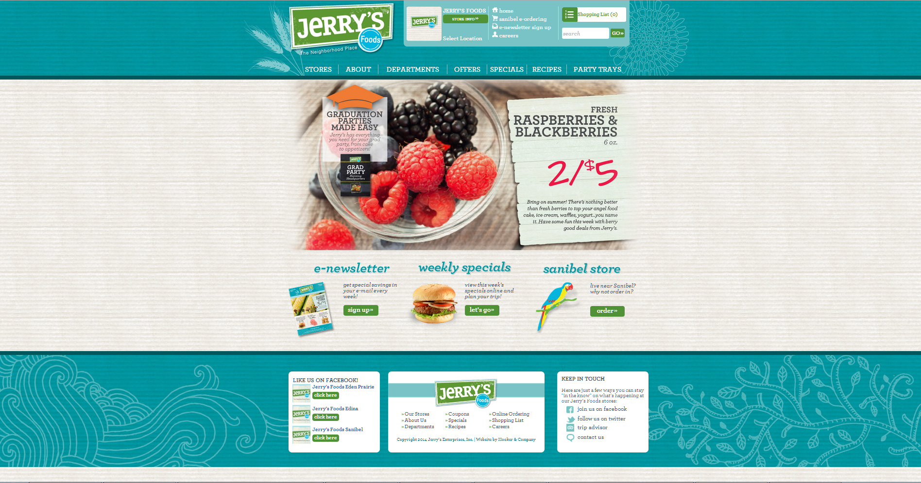 Our friends at Hooker & Company wanted to help their client Jerry's Foods update their website and move away from static pages. We put them on the path of a supreme face lift. We started off with setting them up on our N2 platform to make content management a breeze, and giving them enterprise records to control back end information on a schedule; placing all of that behind a simple and elegant template with built in responsive technologies for mobile. We incorporated a brilliant array of light boxes for pop out content and a custom coupon tool. Finishing it off with a custom recipe search tool based off of the Yumly API to give their customers something they couldn’t help but shop for. View Site